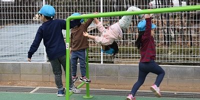 うんていでの遊び方も子どもたちなりに考え、増えてきました。