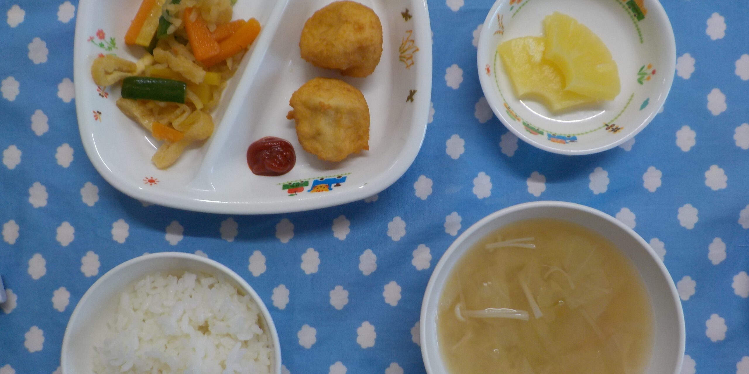 4月22026あおぞら給食 <給食> ・豆腐ナゲット ・カミカミ和え ・ごはん ・味噌汁 ・パイン <おやつ> ・牛乳 ・いももち Category: あおぞら給食2026年4月2日 Share this post Share on FacebookShare on Facebook Share on XShare on X Post navigationPreviousPrevious post:4月1日(水)Related posts4月1日(水)2026年4月1日3月31日(火)2026年3月31日3月30日(月)2026年3月30日3月27日(金)2026年3月27日3月26日(木)2026年3月26日3月25日(水)2026年3月25日3月24日(火)2026年3月24日3月23日(月)2026年3月23日3月21日(土)2026年3月21日3月19日(木)2026年3月19日3月18日(水)2026年3月18日3月17日(火)2026年3月17日3月16日(月)2026年3月16日3月14日(土)2026年3月14日3月13日(金)2026年3月13日3月12日(木)2026年3月12日3月11日(水)2026年3月11日3月10日(火) ☆お別れ給食2026年3月10日3月9日(月)2026年3月9日3月7日(土)2026年3月7日3月6日(金)2026年3月6日3月5日(木)2026年3月5日3月4日(水)2026年3月4日3月3日(火)☆ひなまつりメニュー2026年3月3日