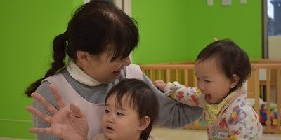 服やスタイに挟んでほしい様子でいつも「ん~!!」と言って、洗濯ばさみを職員のもとに持ってきてくれます。