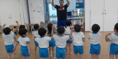 大繩跳びでは、はじめて、一人跳びに挑戦しました。「じゃんぷ!じゃんぷ!」の掛け声に合わせて上手に跳ぶことができていました!