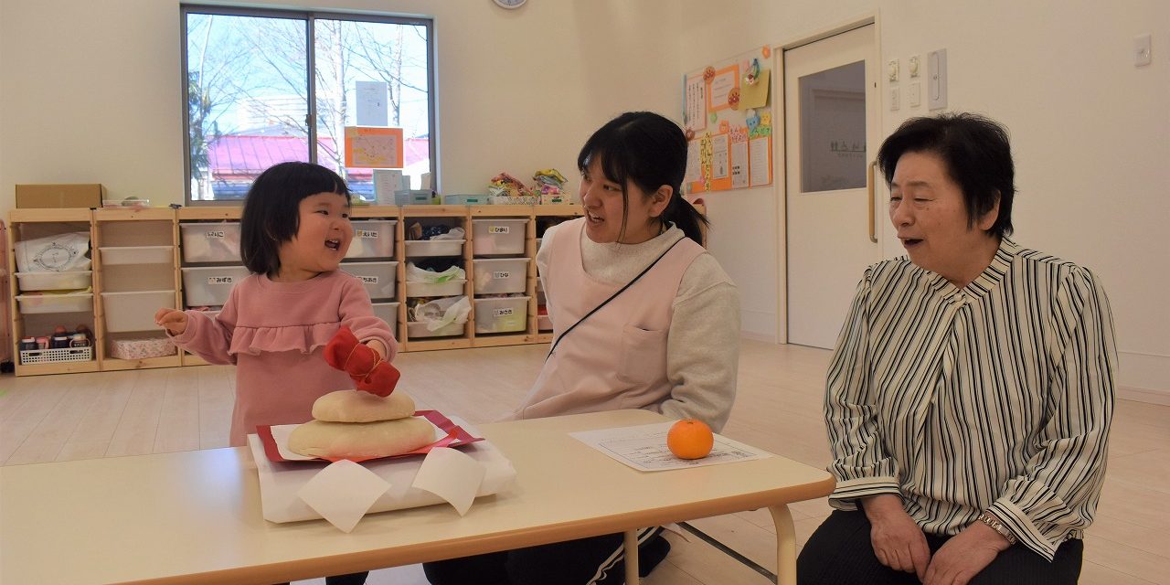 あおぞら保育園の玄関に置いてあった鏡餅を使用しました。