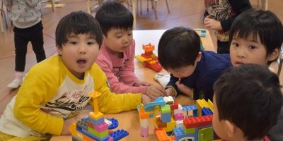 なでしこ組さんと会話をしながら仲良く遊び、一緒に大きな物を作ったりして楽しみました。