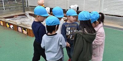 放送の合図でなでしこ組へ集り、不審者対応の訓練の様子を