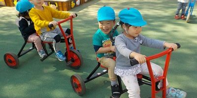 三輪車を前までは足でけって進んでいる子が多く見られましたが最近は