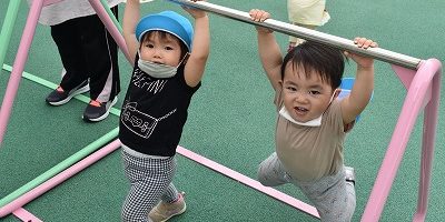 そして最近設置された鉄棒も人気でぶら下がるのがとっても上手です♪