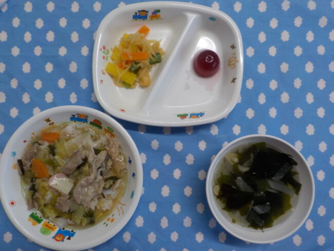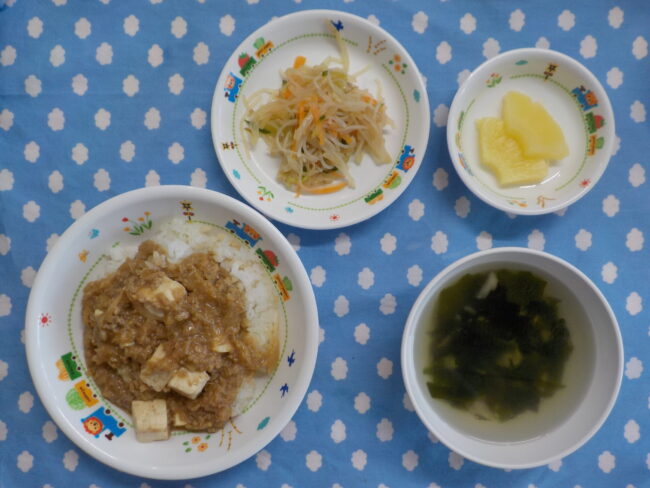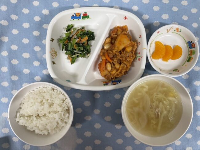 3月132026 3月13日(金) 2026年3月13日 <給食> ・豚肉とキャベツの中華炒め ・ほうれんそうのナムル ・ごはん ・わかめスープ ・パイン ※ほうれんそうをたくさんいただいたのではるさめサラダをほうれんそうのナムルに変更して提供しまし… Details