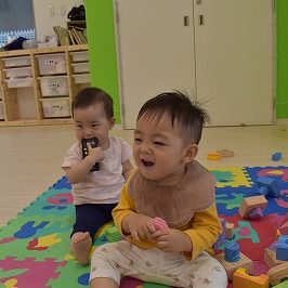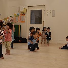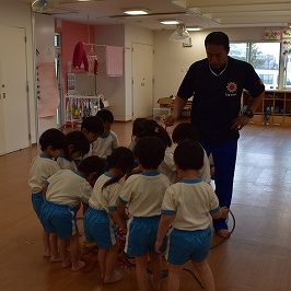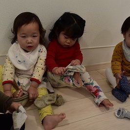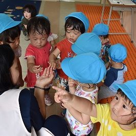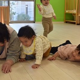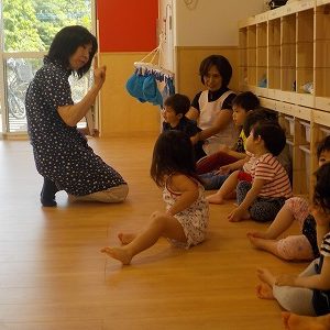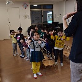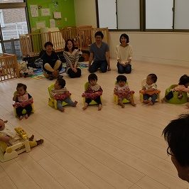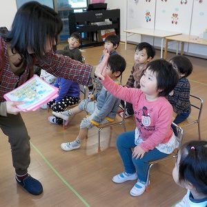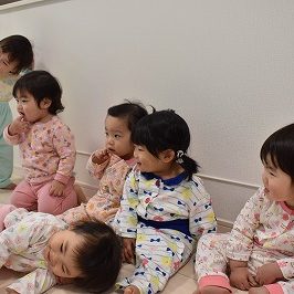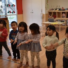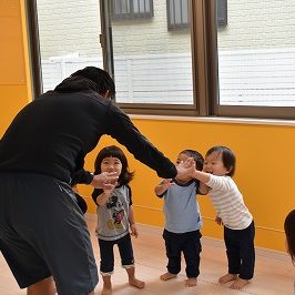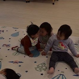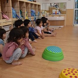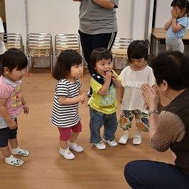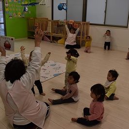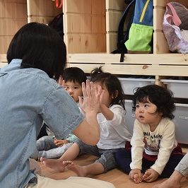 ☆こでまり組 保護者の方にいつもの朝の会の様子を見ていただき、 絵本を読んだり手遊びをしたりしました。 その後は親子で向き合ってにらめっこや一本橋こちょこちょをして 楽しみました…