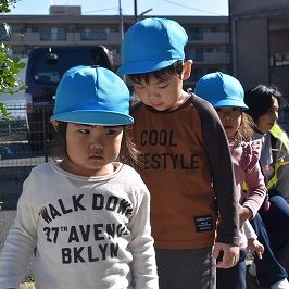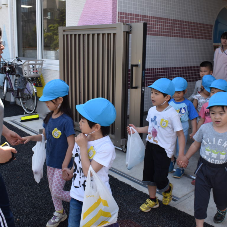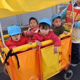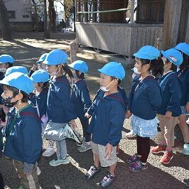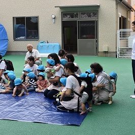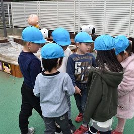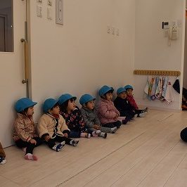 避難訓練をしました。 こでまり組の子どもたちもおはなしを聞いて安全に避難することができました。 消防車を見ると近くに行きたくて、「あ~」と嬉しそうに指をさしていました。 最後には…