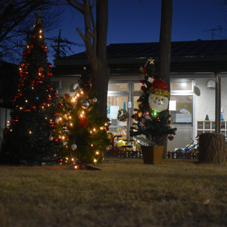 12月3日~12月24日までイルミネーションを飾りました♪ 最終日はクリスマスツリーをたくさん置いて 「すごーい!」「きれ~い」と子ども達も喜んでいました! 来年度もぜひお楽しみください🎄